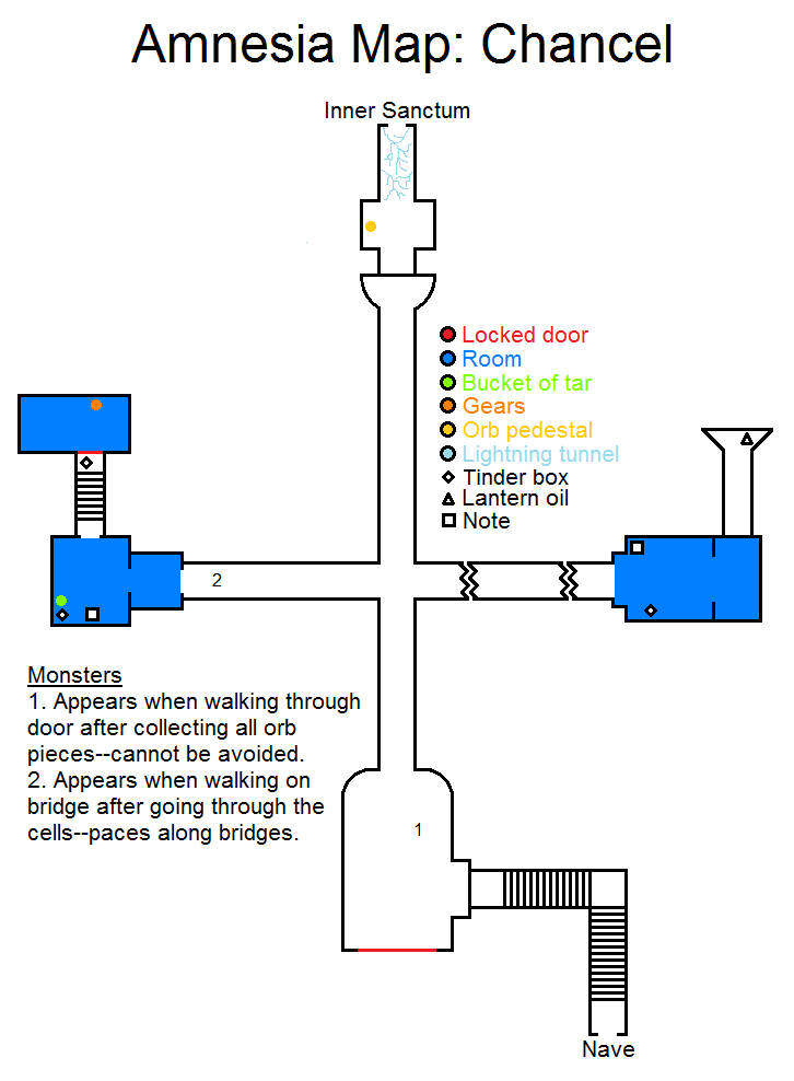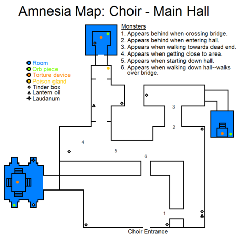 And most important we have 3 other walkthroughs for Amnesia. Choir Main Hall Nave Chancel. - Sanity dropping to zero results in death.