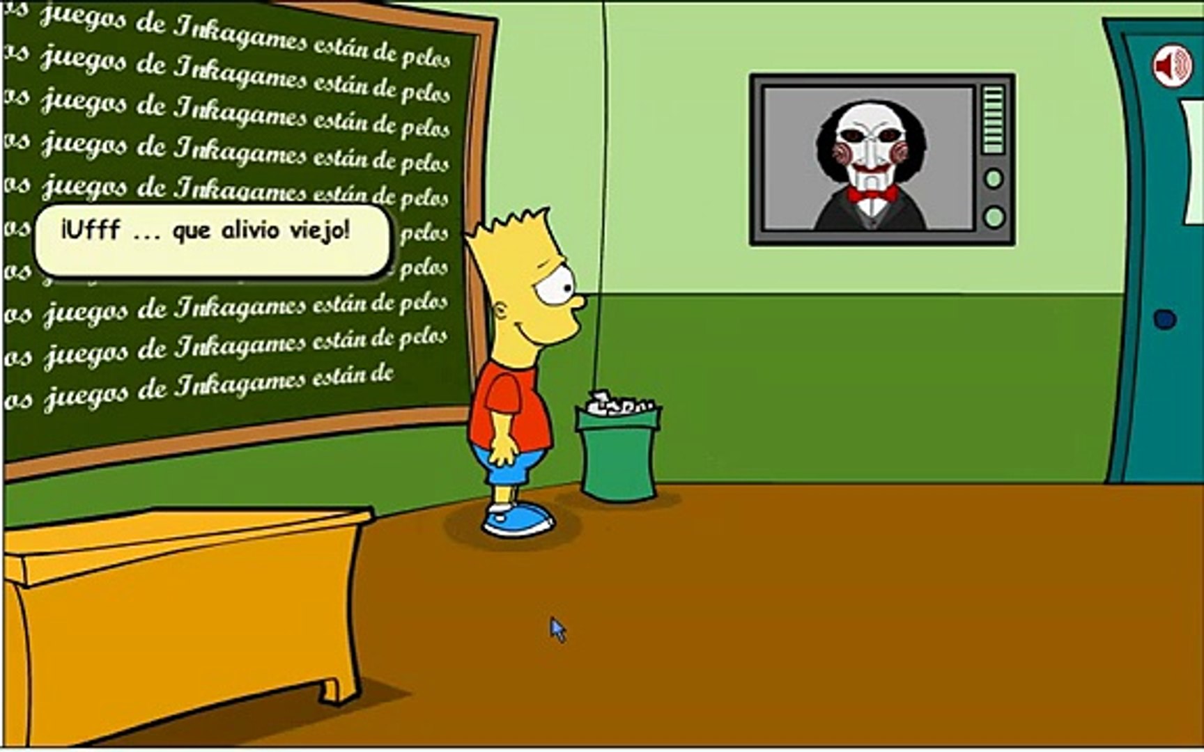 Bart simpson saw game walkthrough video - You can walk around by clicking on any part of the floor. Bart Simpson Saw Game 2 Walkthrough Video. Bart Simpson Saw Game Solucion walkthrough. Bart simpson saw game 2 gameplay part 1. Bart Simpson Saw Game Walkthrough. The evil puppet Pigsaw has trapped poor Bart inside his very own school along with some of the most evil characters of SpringfieldHelp him find a way out befores too late. Bart Simpson Saw Game 2 Walkthrough Hints Tips Cheats Solution Help Guide Tricks Answers. Evil Puppet Pigsaw has trapped Bart inside his own school along with some of the most evil characters of Springfield. Bart Simpson Saw is a funny escape game made by Inkagames. At the end of the game Lisa had to solve a math problem and type the correct code into a keylock.