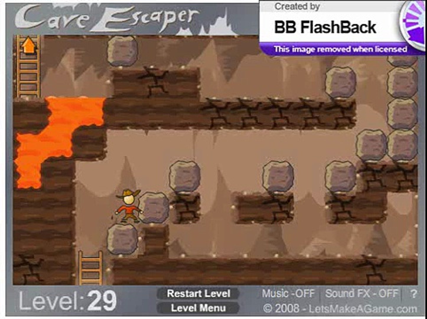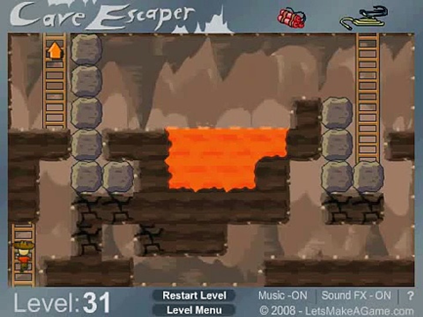 This is tricky and may take several attempts aim for the lower central area. The Escaper is a brain-teasing puzzle game with four short levels. Assume that you have been trapped in a cave and use the object around room to escape from there.