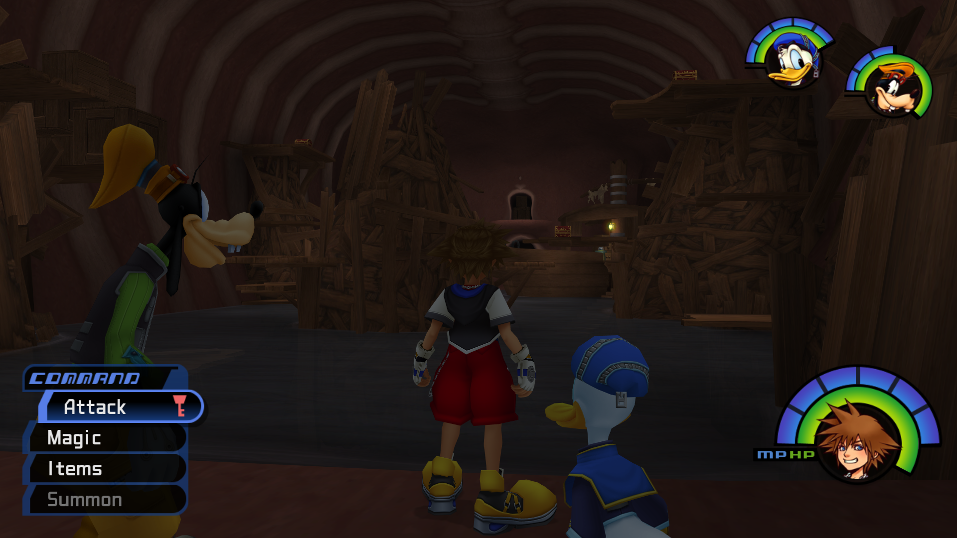 Just before you enter this world a brief scene will show Sora being concerned about entering this world since they will drown if they enter it. I love how many details and hidden areas are in KH1. From the mouth you will need to climb up the wooden structures and reach the door above the Chamber 1 entrance to enter the Throat.