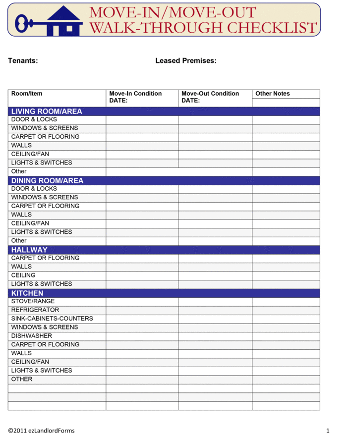 Show ImageMove In Move Out Walk Through Checklist Ezlandlordforms