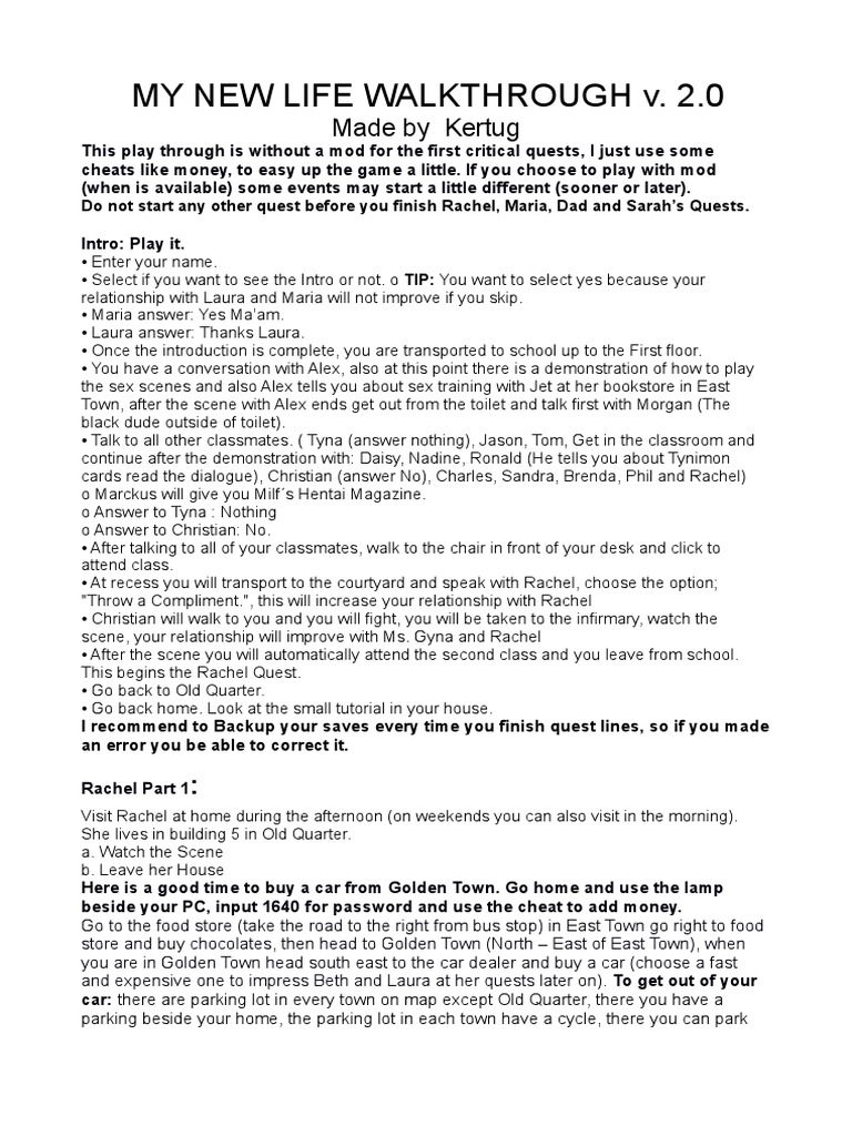 Ask a question or add answers watch video tutorials submit own opinion about. My New Life game where you will embody the life of a young man. View Walkthrough_v14_Xtras_Completepdf from BBA 201 at Daffodil International University. My New Life Game Walkthrough Free Download for PC This PC game is working perfectly fine without any problem. MY NEW LIFE PC Game Free Download via torrent link. So far there are 2 key points throughout the Walkthrough. It is an amazing My new Life Game. Contents hide 1 New Life With My Daughter Walkthrough First Steps. REVAMP Download Game Final Walkthrough Inc Patch Latest Version You will assume the role of a young person in. My New Life Guide Follow A Build Guide If You Are New Or Else The Sims game guides.