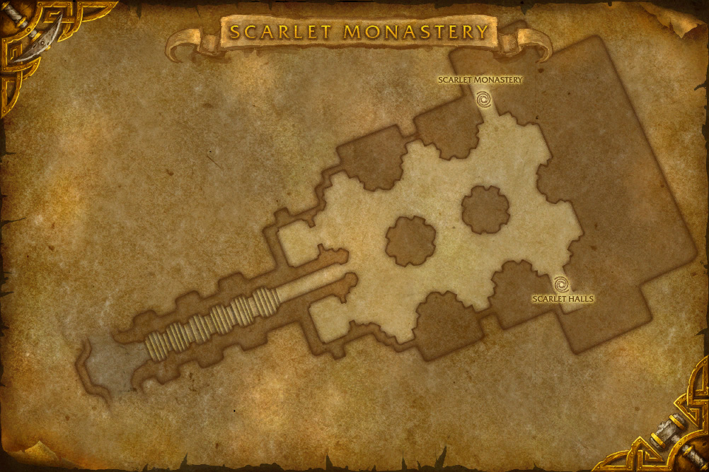 Classic WoW - Scarlet Monastery Boss Loot Map 1. World of Warcraft at IGN. With the rise of the undead Scourge during the Third War the peaceful Monastery was converted into a stronghold of the fanatical Scarlet Crusade.