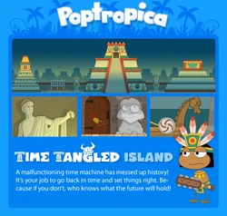 Written Walkthrough When you arrive go to the right until you see a crying lady. You begin in the future and then can travel to different time periods using a special time travel device. Time Tangled was one of Poptropicas first island adventur.