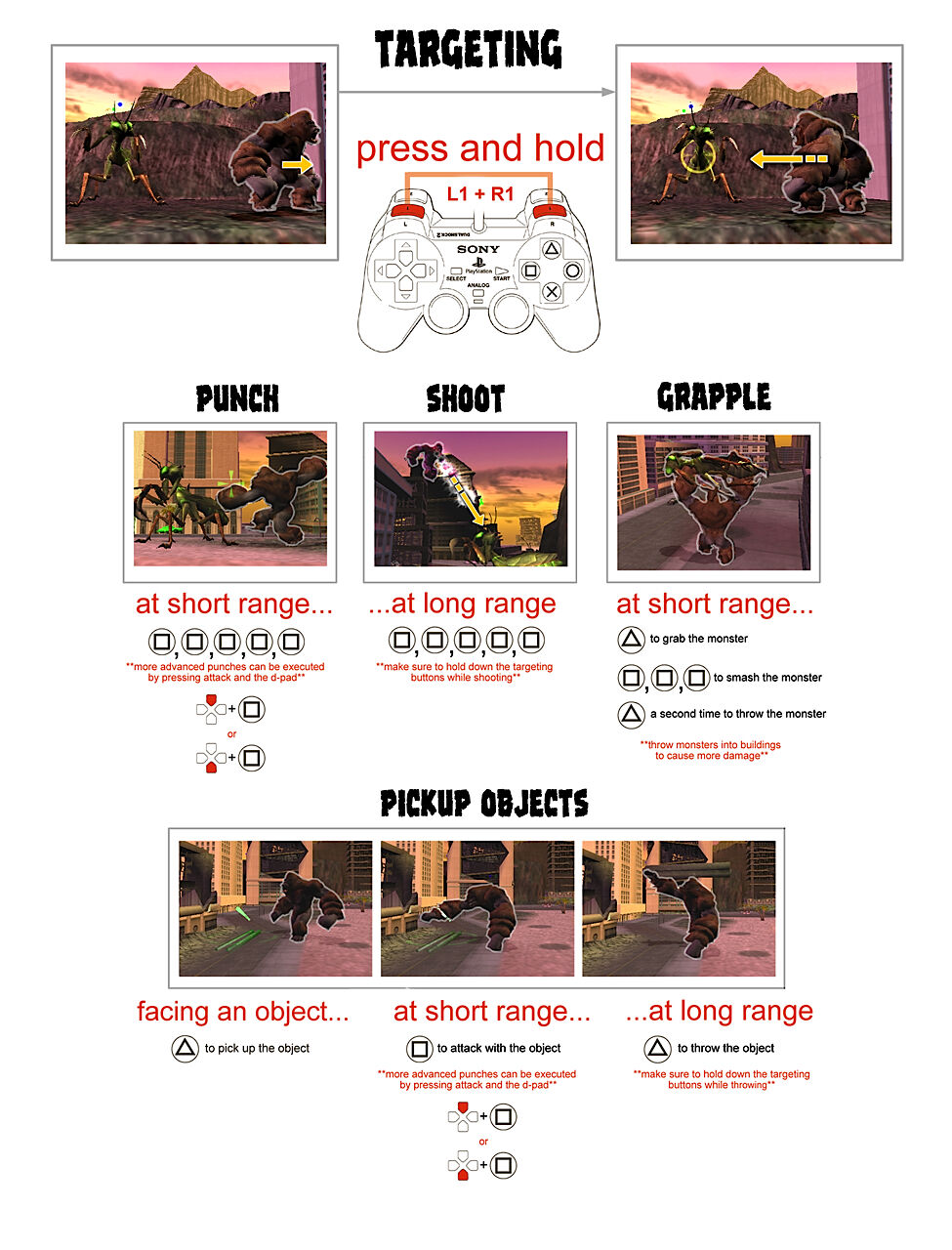 As soon as he is impaled turn toward the building. You should hear a sound if done correctly if your energy gauge fills back up and you didnt hear a confirmation sound empty your gauge again and repeat. Destroy Goliath Prime and his Preytor minions. Take control of the military and hope not to get stepped on or try your luck at killing the giant monsters. War Of The Monsters Cheats For Playstation 2 Strategy Guide. Youll need two memory cards. Walkthrough unlockables multiplayer info and more. The control scheme. War Of the Monsters Contents Guide. Taunt an enemy for the first time.