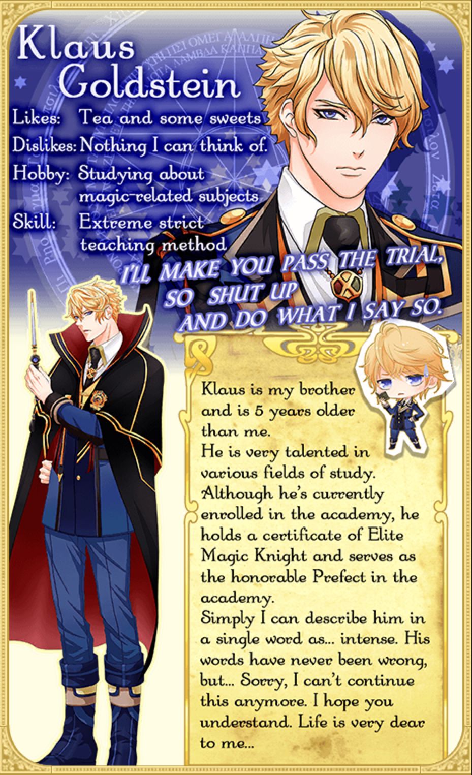 Show ImageOne day she receives a letter from GedoneluneRoyal Magic Academy the most prestigious magic academy of the land. Walkthrough Shall We Date. Edward Walkthrough 4 Elias 1 Elias Walkthrough 1 Enojo 3 Enojo Spinoff 2. By Vehura August 27 2018. Event Near the Water. Items Story Ticket x5 Elias Classic Muffins x2 Aruenaristy x5 Magic Grade 200pt x1 Avatars Room Matching Outfit With Klaus -2- Normal Ending. Intimacy Level by 7 Brilliant-answers-Day 1. Walkthrough Wizardess Heart. Aug 12 2016 - Alfonse Azusa Cerim Elias Glenn Guy Hiro Joel Klaus Leon Leslie Luca Main Page Mel Randy Sigurd Vincent Wizardess Heart Yukiya NTT. Elias Goldstein March 7 2020.